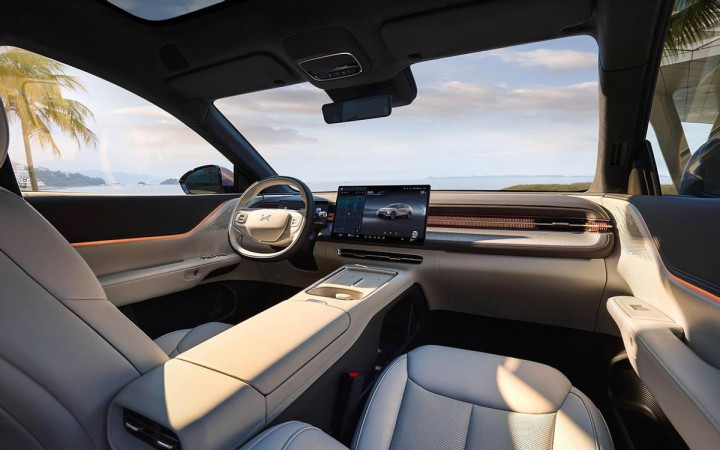 内饰部分,新款小鹏G6新增加了扶摇绿的车内配色,并且配备了全新的家族式电容方向盘。